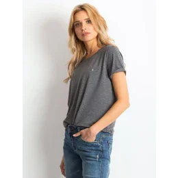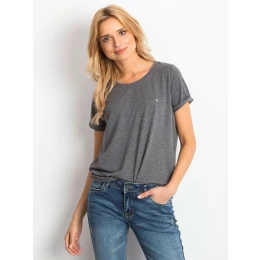 Dámské bavlněné melanžové tričko basic tmavě šedé.