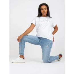 Rozměry trička v jedné velikosti měřené na plocho: šířka v podpaží - 59 cm, celková délka (vpředu) - 61 cm, celková délka (vzadu) - 70 cm.