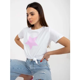 Bílé a světle fialové bavlněné tričko s potiskem .