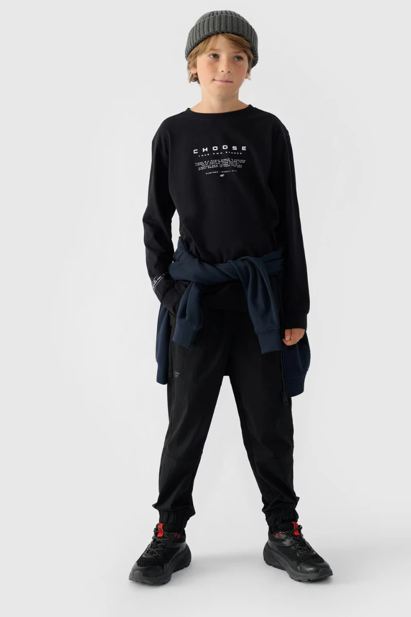 Tričko S Dlouhým Rukávem Pro Chlapce S Potiskem Regular 4F 4FJWAW24TLONM294-20S Černé