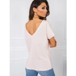 Tričko s výstřihem na zádech ve světle růžové barvě.