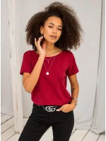 Tričko MaroonFire. Dámské bavlněné tričko Basic se zajímavě střiženým výstřihem na zádech je skutečným hitem této sezóny. Hladká jednobarevná dámská trička v naší základní kolekci sází na minimalismus a lákají na obrovskou paletu módních barev. Díky velkému výběru barev a velikostí si každý z vás jistě najde něco, co mu bude vyhovovat! Toto základní tričko chytře kombinuje pohodlný tvar s ženskými prvky: má volnější střih, který je šetrný k ženské postavě, takže neomezuje v pohybu, a navíc má na zádech trojúhelníkový výstřih, který mu dodává spoustu půvabu. Základní tričko, jako je toto, je ideální nejen na jaro a léto, ale skvěle poslouží po celý rok, protože je dokonalým základem každého oblečení. Můžete ji nosit samostatně k módním sukním nebo kalhotám s vysokým pasem nebo pod módní mikiny a přechodné bundy z naší kolekce. O něco delší a volnější střih trička vám nabízí více možností, jak ho stylizovat, protože jeden okraj můžete svázat do módního uzlu nebo přebytečnou látku zastrčit do kalhot. Představené dámské tričko se od ostatních triček odlišuje také ženským velkým výstřihem ve tvaru písmene V na zádech. Takový design vypadá na siluetě velmi atraktivně a žensky, zároveň je velmi pohodlný pro každodenní nošení a rozhodně upoutá pozornost, přestože je součástí minimalistické základní kolekce.