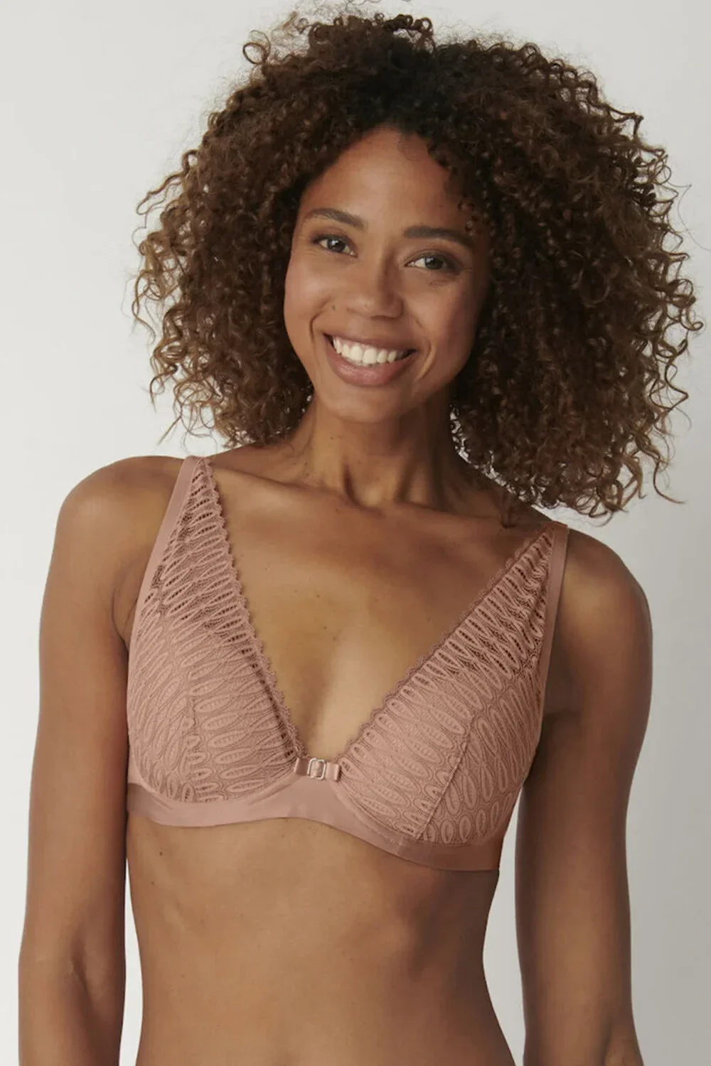Podprsenka značky Triumph, model 10208018 Aura Spotlight WP. Má drátky, které podporují a tvarují prsa. Výrobek má nastavitelná ramínka bez možnosti odepnutí. Zapínání na háčky. Místo zapínání: na zádech. 2 řady svislých výšivek. 3 úrovně vodorovných výšivek. Výrobek je vyroben z 66 % polyamidu, 17 % polyesteru, 17 % elastanu. Dámský výrobek. Boky vyztužené látkou.