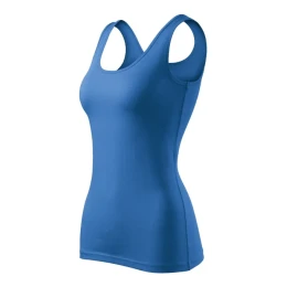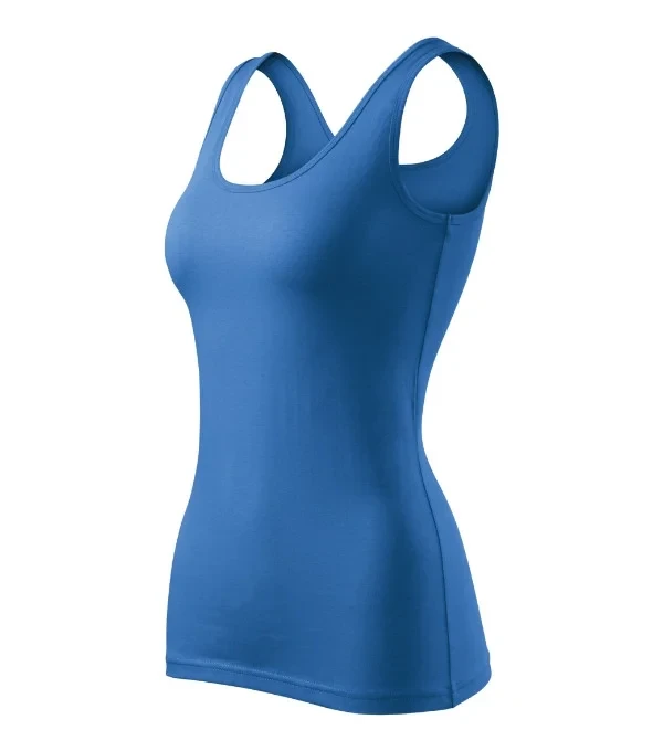 strečový materiál udržující stálost tvaru přiléhavý střih s bočními švy hlubší kulatý výstřih průkrčník a průramky lemovány vrchovým materiálem širší ramínka