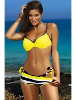 Komplet doplňují klasické kalhotky a také šortky. Pruhované šortky mají v pase širokou gumu. Vykrojené klasické kalhotky se na bocích zavazují pruhovanými šňůrkami.