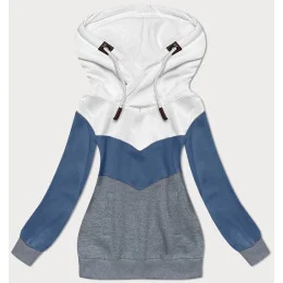 Bilo-světle modro-šedá hrubší trojbarevná dámská mikina (2303)