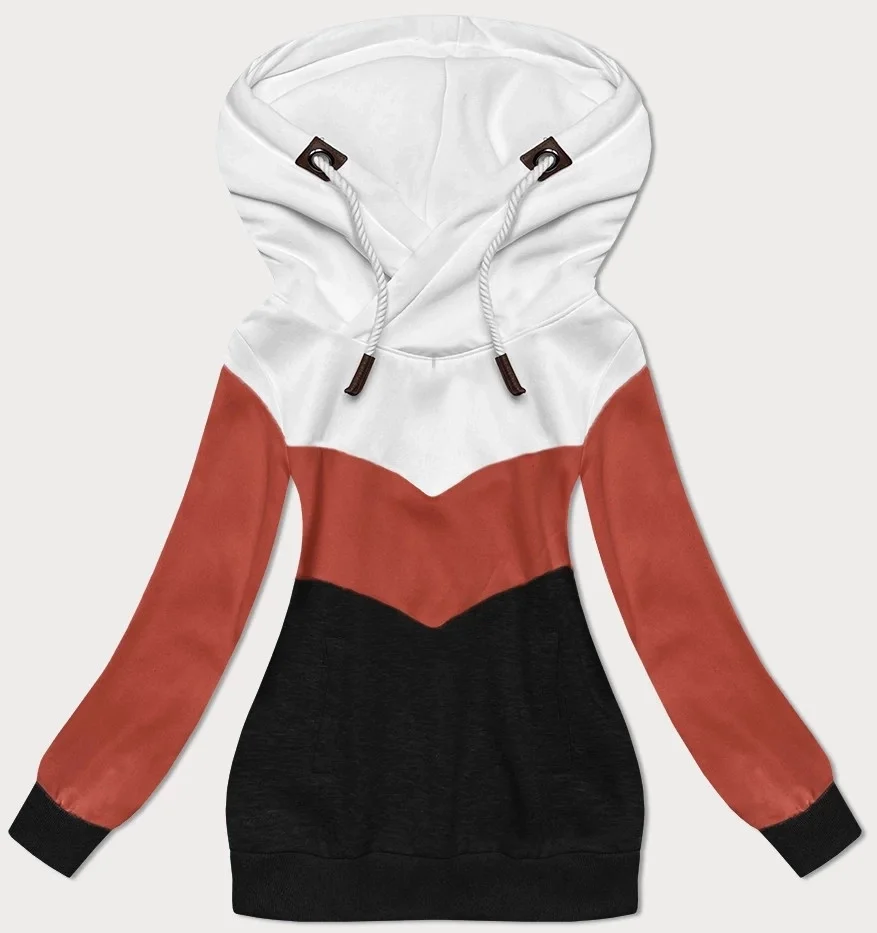 Bílo-oranžovo-černá hrubší trojbarevná dámská mikina (2303)