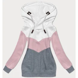 Bílo-růžovo-šedá hrubší trojbarevná dámská mikina (2303)
