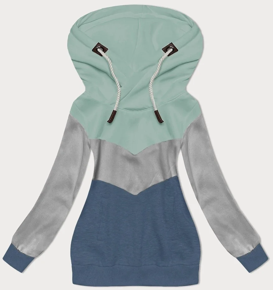 Mátovo-šedo-tmavě modrá hrubší dámská trojbarevná mikina (2303)