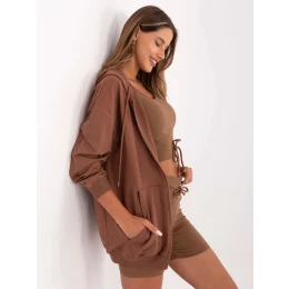 Trojdílný komplet, který se skládá z mikiny, topu a šortek.