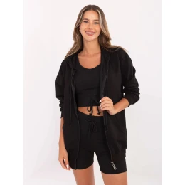 Trojdílný komplet, který se skládá z mikiny, topu a šortek.