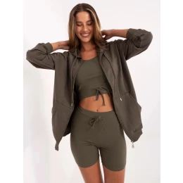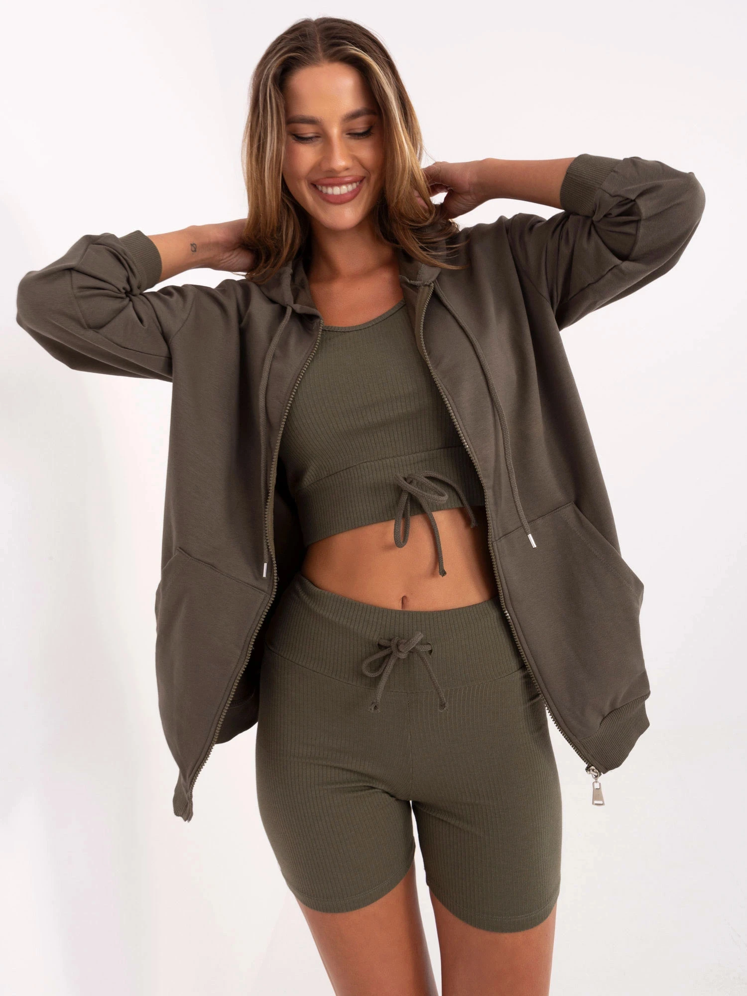 Tojdílný dámský komplet basic v khaki barvě (7742)