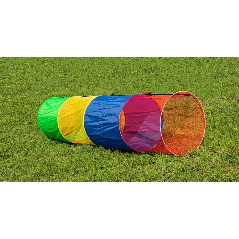 Tunel se skládá ze 4 barevných panelů kulatého tvaru. Panely jsou vyrobeny z barevné síťoviny a hladké tkaniny. Rozměry tunelu jsou 240 × 60 cm. Tunel se snadno rozkládá a přepravuje. Rám (obruče) je vyroben z pružného plastu, stejně jako příčné tyče, které zabraňují skládání tunelu.