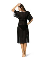 Novinka! Stylový, lehce průsvitný plážový overal, vyrobený z jemného tylu. Elastický, z kvalitní italské látky. Skvěle padnoucí, velmi pohodlný. Luxusní, vyrobený pro náročné ženy, na dovolené se vám bude určitě hodit. Vypadá jako šaty. Klasický výstřih, šňůrka pod prsy, nastavitelný, nastavitelné rukávy. "Prasklinky" na bocích stehen. Rozhodně doporučujeme!