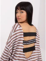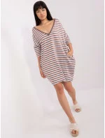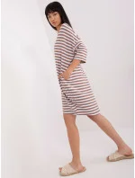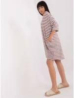 Světle hnědé a bílé teplákové šaty s kapsami .