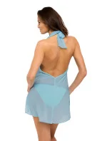 Výstřih se vzdušným volánkem je ženský a zajímavý, látka je pružná, lehce průhledná (typ "mesh tylu" - velmi oblíbený a nesmírně ženský), výstřih na zádech a spodní část tuniky je zakončena půlkruhem. 80 % polyamid, 20 % elastan.