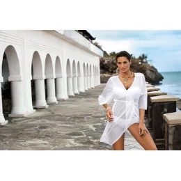 Novinka! Zajímavá, hladká tunika s výjimečně krásným vzhledem. Z lehce průsvitného, vzdušného tylu. Elastická, fenomenální, měkká. Perfektně sedí. Vypadá jako župan. Italská látka zde vypadá fenomenálně, okouzlí svým stylem. Výstřih až k loktům. Na bocích stehen - sexy průstřihy. Tunika se zavazuje na boku. Rozhodně doporučujeme!