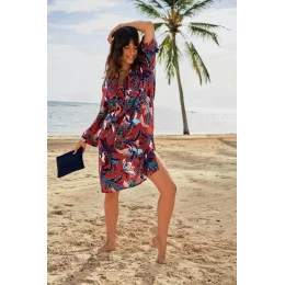 Dámské košilové šaty na knoflíky - model 1 B259 Tmavě oranžová se zelenou vzor - BeWear