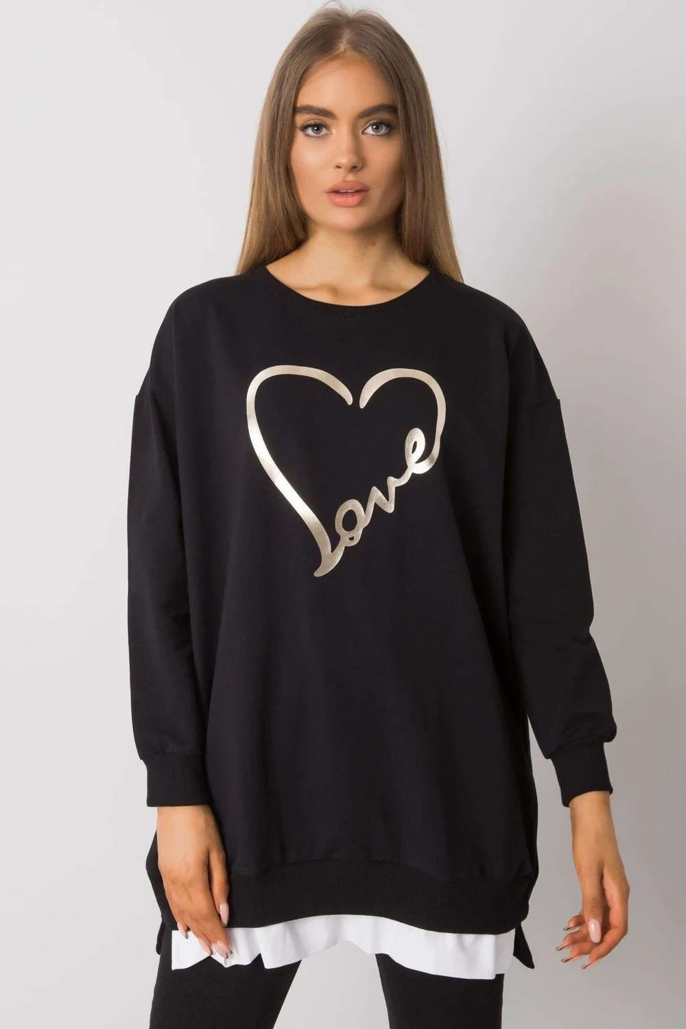 Volná tunika s dlouhými rukávy a kulatým výstřihem. Dekorativní potisk na přední straně.