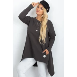 Elegantní tunika plus size s prodlouženým asymetrickým střihem je skvělým návrhem pro ženy, které ocení pohodlí a moderní vzhled. Vyrobená z měkkého, příjemného materiálu, krásně padne na postavě, poskytující volnost pohybu a jemné zúžení postavy. Model kombinuje střih tuniky a asymetrické šaty, díky čemuž se skvěle hodí jak k legínám, tak i jako samostatné volné šaty. Klasický, kulatý výstřih zdůrazňuje krk a hodí se ke každému stylu. Dlouhý rukáv, ideální na chladnější dny. Praktické kapsy skryté v bocích švů, které dodávají pohodlí a funkčnost. Na přední straně dole je malá nášivka, která celku dodává módní charakter. Tunika se obléká přes hlavu, což zajišťuje rychlé a pohodlné nasazování. Moderní, pohodlná a stylová, skvěle doplní každodenní stylizace a její prodloužený asymetrický střih skvěle zdůrazní výhody postavy plus size.