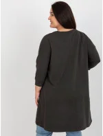 Bavlněná tunika v khaki barvě plus size s gumou ve spodní části.
