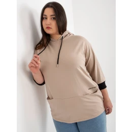 Tmavě béžová plus size mikina s kapsami .