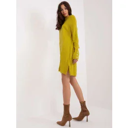 Olivové pletené šaty s rozparky .