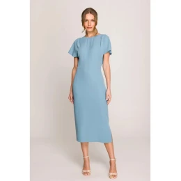Tužkové šaty s rozparkem na boku S398 nebesky modré - Stylove