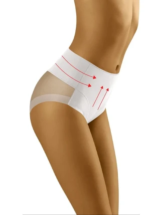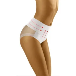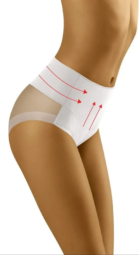 Tvarující kalhotky z kvalitního materiálu. Přední strana je zpevněná druhou vrstvou látky pro snazší tvarování břicha. Speciální střih a použití síťky na pozadí pomáhá pozvednout zadeček. Díky plochým švům se kalhotky nerýsují pod oblečením.