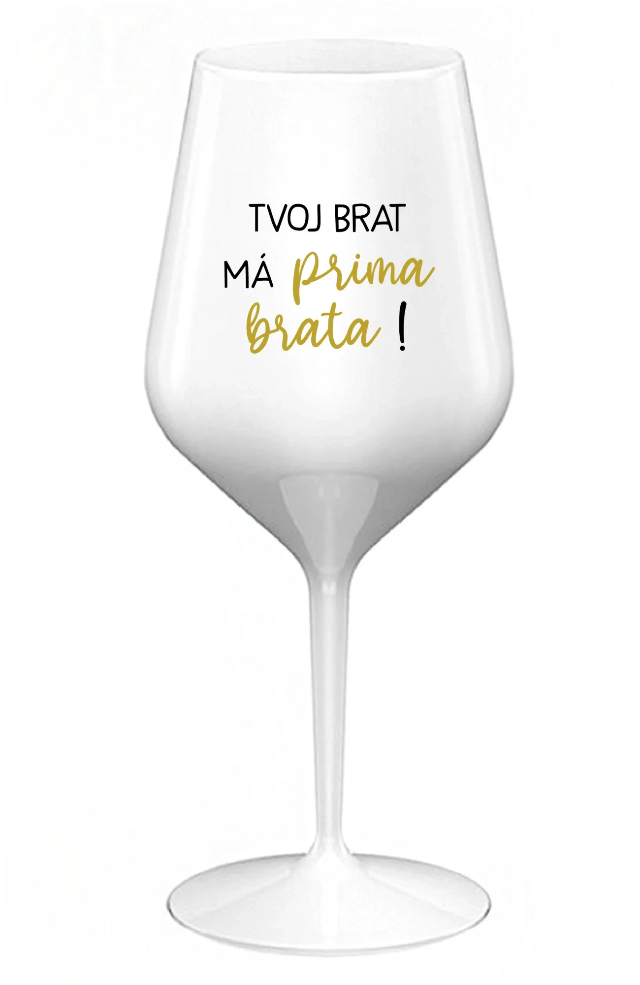 TVOJ BRAT MÁ PRIMA BRATA! - biely nerozbitný pohár na víno 470 ml