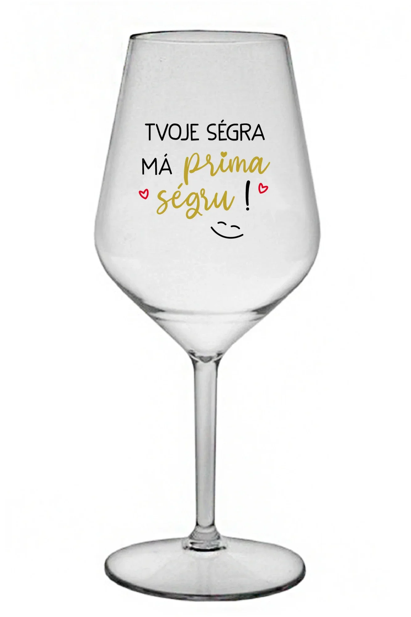 TVOJE SÉGRA MÁ PRIMA SÉGRU! - čirá nerozbitná sklenice na víno 470 ml