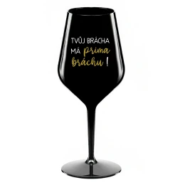 TVŮJ BRÁCHA MÁ PRIMA BRÁCHU! - černá nerozbitná sklenice na víno 470 ml