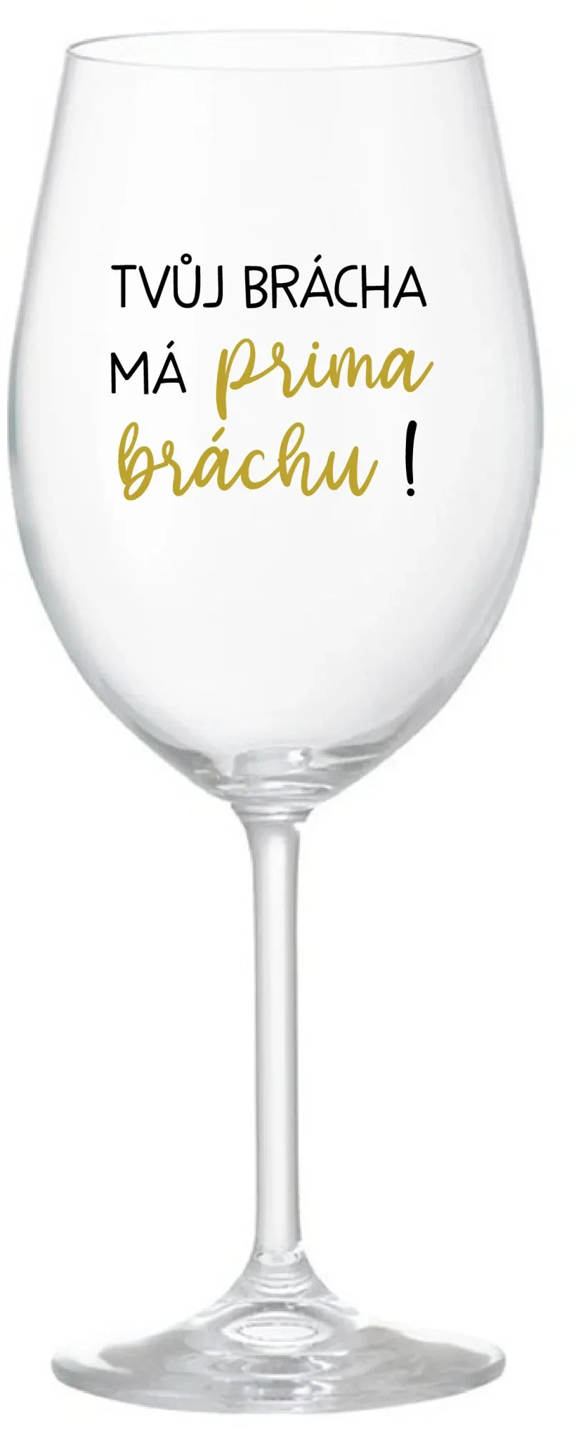 TVŮJ BRÁCHA MÁ PRIMA BRÁCHU! - čirá sklenice na víno 350 ml