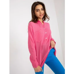 Růžová dámská bavlněná košilová halenka OCH BELLA.