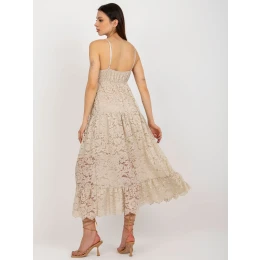 Společenské dámské šaty na ramínka krajkové s kolovou sukní růžové - Růžová / L - Sherri