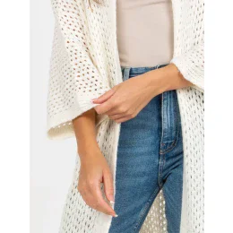 Ecru dlouhý prolamovaný svetr se širokými rukávy OCH BELLA .