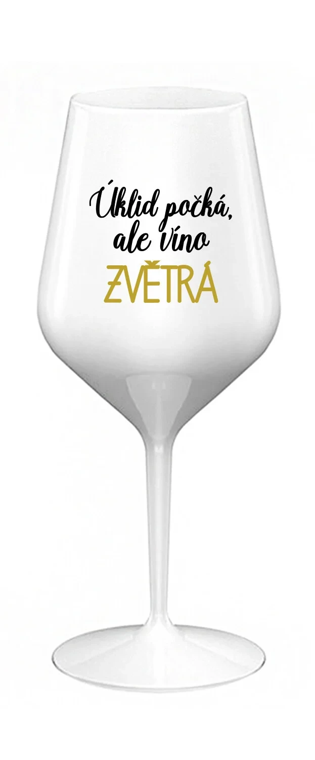 ÚKLID POČKÁ, ALE VÍNO ZVĚTRÁ - bílá nerozbitná sklenice na víno 470 ml