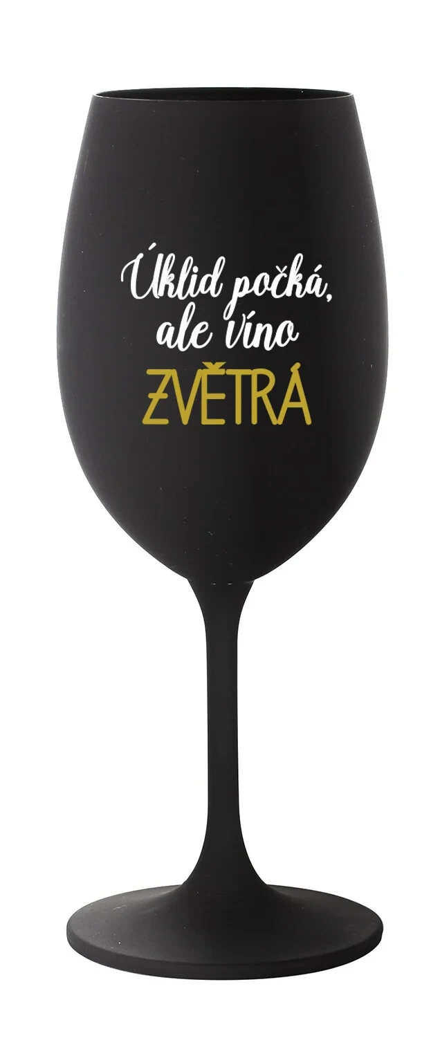 ÚKLID POČKÁ, ALE VÍNO ZVĚTRÁ - černá sklenice na víno 350 ml