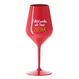 ÚKLID POČKÁ, ALE VÍNO ZVĚTRÁ - červená nerozbitná sklenice na víno 470 ml