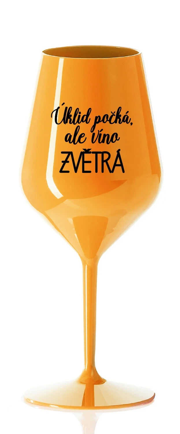 ÚKLID POČKÁ, ALE VÍNO ZVĚTRÁ - oranžová nerozbitná sklenice na víno 470 ml