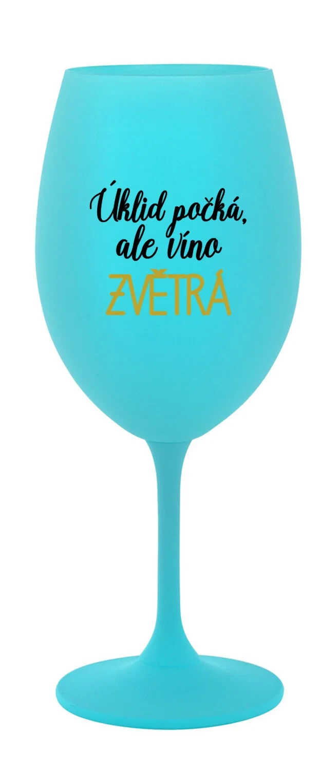 ÚKLID POČKÁ, ALE VÍNO ZVĚTRÁ - tyrkysová sklenice na víno 350 ml