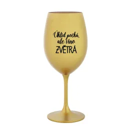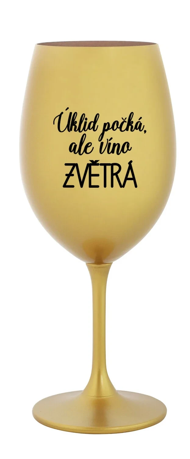 ÚKLID POČKÁ, ALE VÍNO ZVĚTRÁ - zlatá sklenice na víno 350 ml