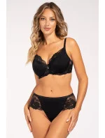 Podprsenka značky Unikat, model Amal, má drátky, které podpírají a tvarují prsa, svislé velrybí kostice na bocích, nastavitelná ramínka, která nelze odepnout, kovové háčky na ramínkách, zapínání na háčky a očka, zadní díl, vyrobeno z 83 % polyamidu, 12 % elastanu, 5 % bavlny, ženská barva.