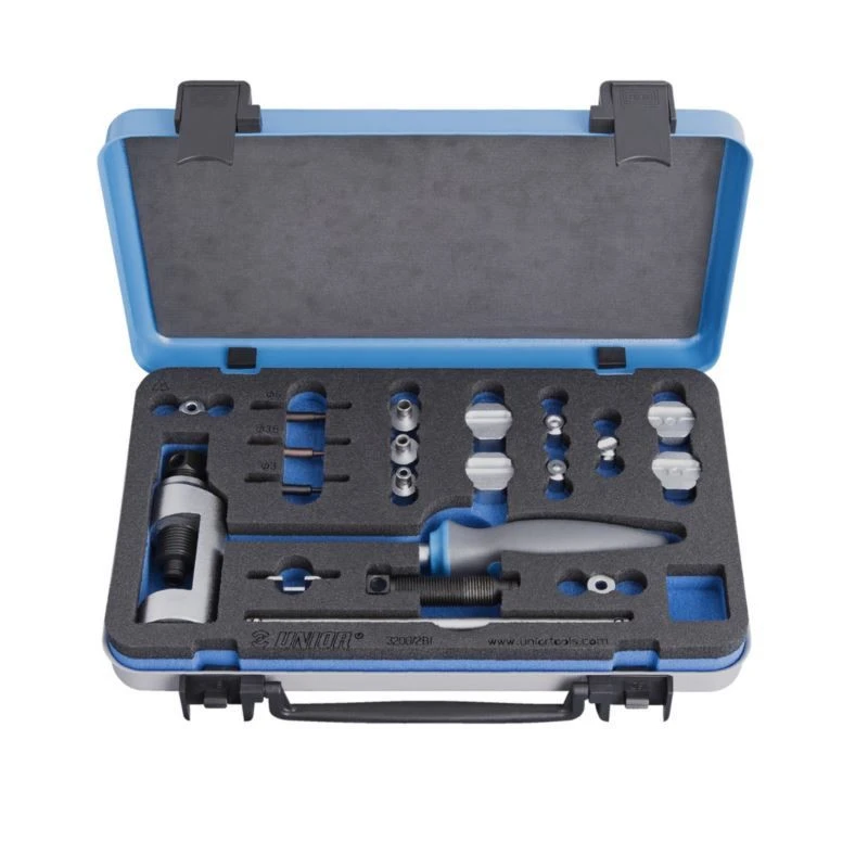 vložte sadu do nástroje. nasaďte nástroj na spojovaný řetěz a otáčením rukojeti dotáhněte nýtovací kolík, dokud nebude řetěz pevně spojen