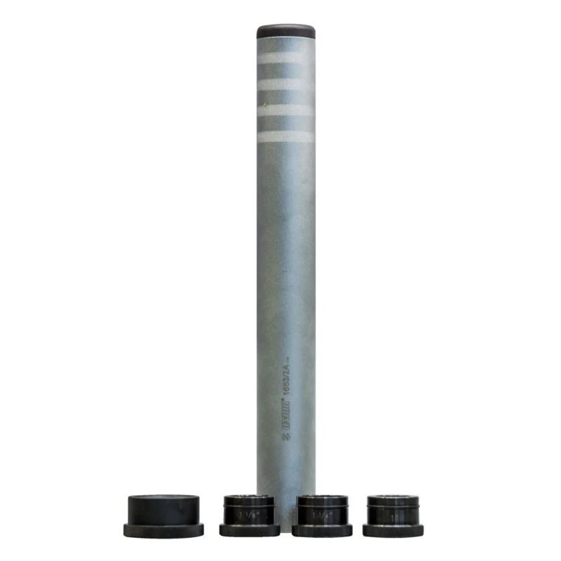 Nástroj určený k montáži misek na vidlicové trubky o průměru 1", 1,1/4", 1,1/8", 1,1/2". Vložka je vyměnitelná. Nástroj umožňuje rychlou a přesnou práci. nástroj se používá v kombinaci s kladivem; doporučujeme samonabíjecí kladivo Unior 819A.