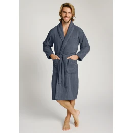 Unisex župan Muydemi v elegantní tmavě šedé barvě je vyroben ze 100% bavlny, která je příjemná na dotek a výborně saje vodu. Díky tomu je ideální nejen na domácí pohodu, ale i po koupeli či sauně. Praktický střih se šálovým límcem, dvěma kapsami a páskem v pase zajistí pohodlné nošení a univerzální design se hodí pro muže i ženy.