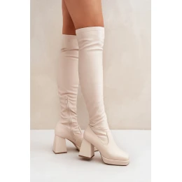 Upnuté kozačky nad kolena na podpatku jasně béžové Sanniraen