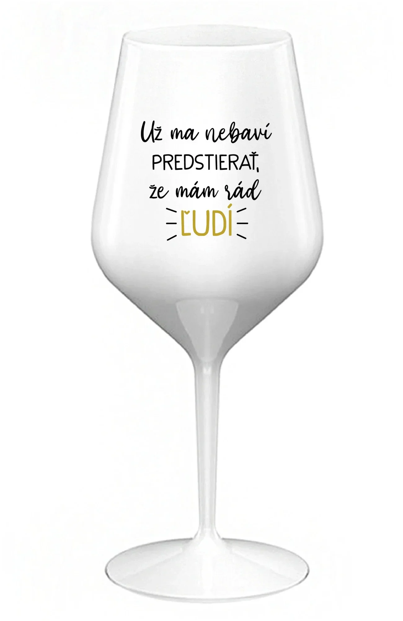 UŽ MA NEBAVÍ PREDSTIERAŤ, ŽE MÁM RÁD ĽUDÍ - biely nerozbitný pohár na víno 470 ml