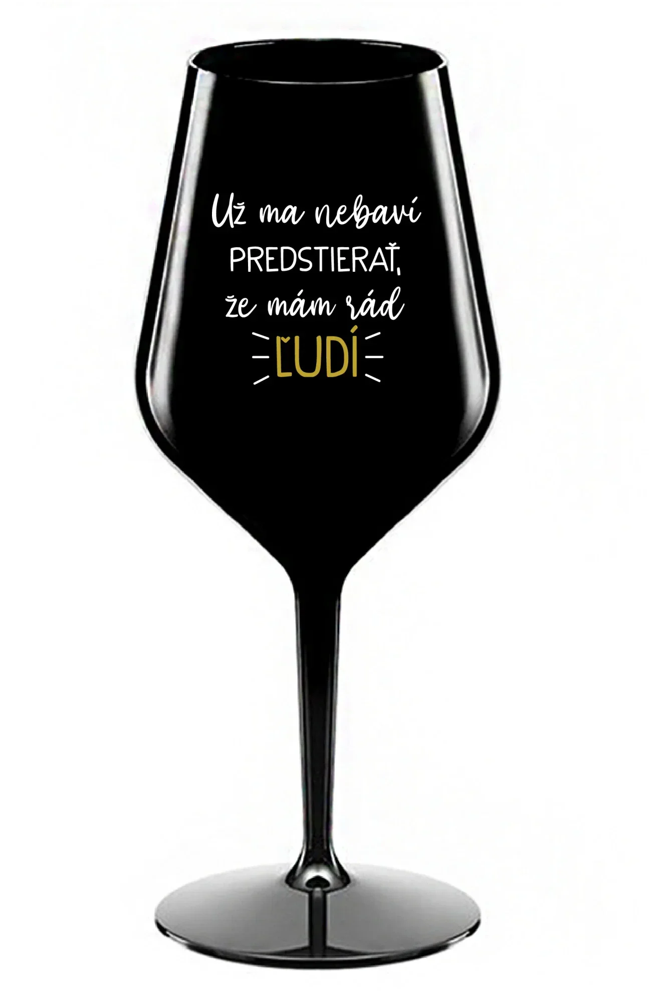 UŽ MA NEBAVÍ PREDSTIERAŤ, ŽE MÁM RÁD ĽUDÍ - čierny nerozbitný pohár na víno 470 ml