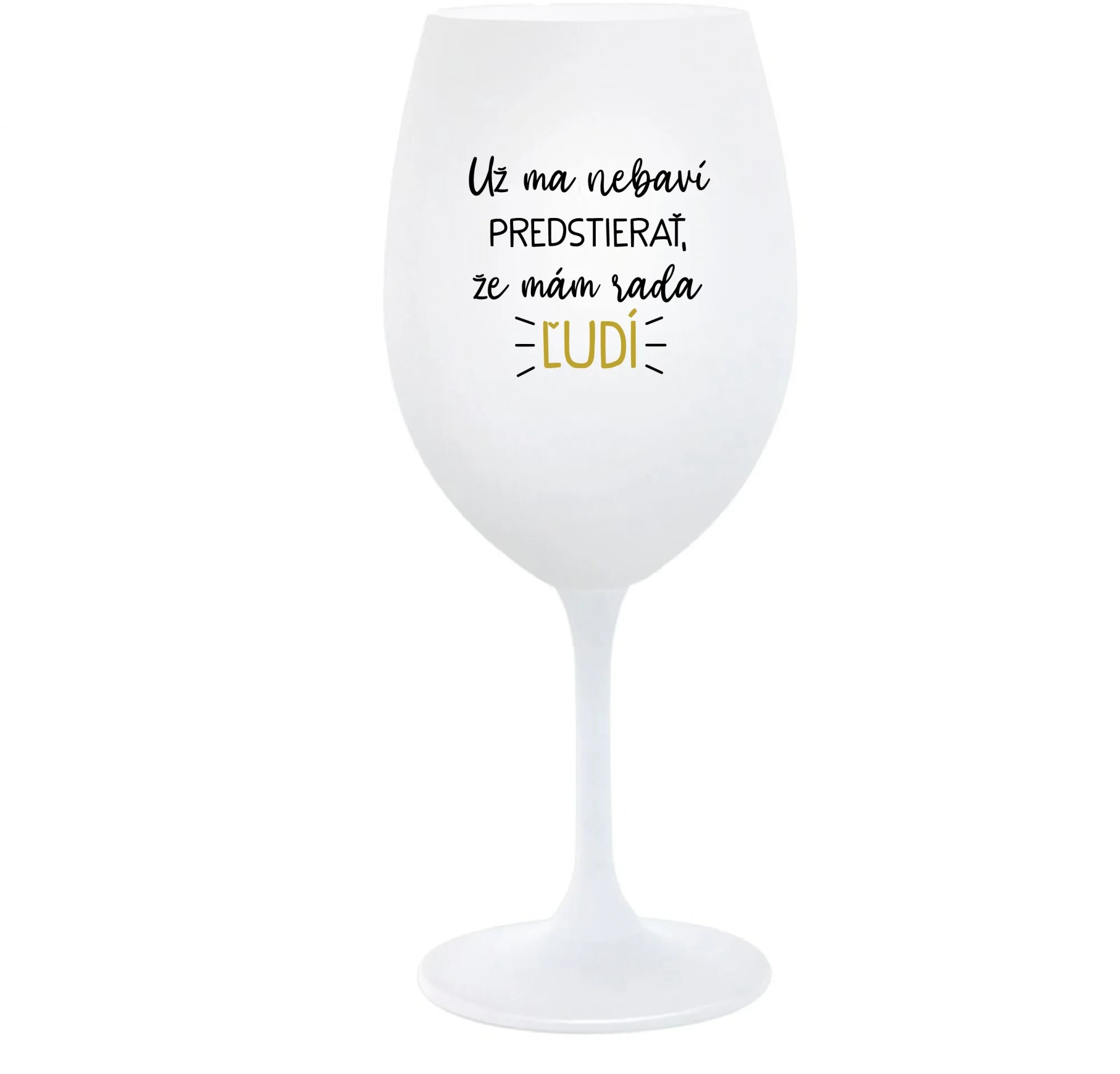 UŽ MA NEBAVÍ PREDSTIERAŤ, ŽE MÁM RADA ĽUDÍ - biely pohár na víno 350 ml